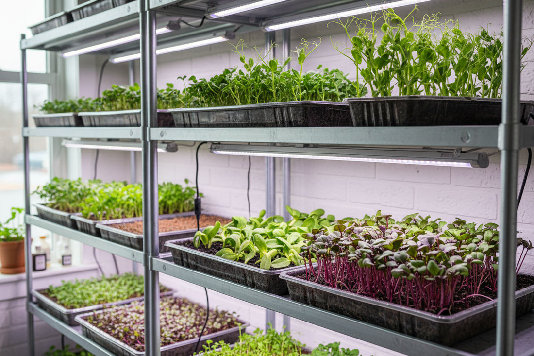 Our microgreens and leafy greens grow in hydroponic systems — nutrient-rich water solutions that deliver everything the plant needs directly to the roots. The result is fast, consistent growth with significantly less water than traditional farming. No soil, no pesticides, no seasonal gaps.